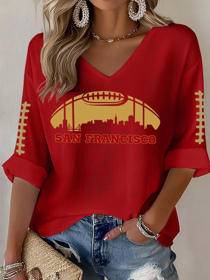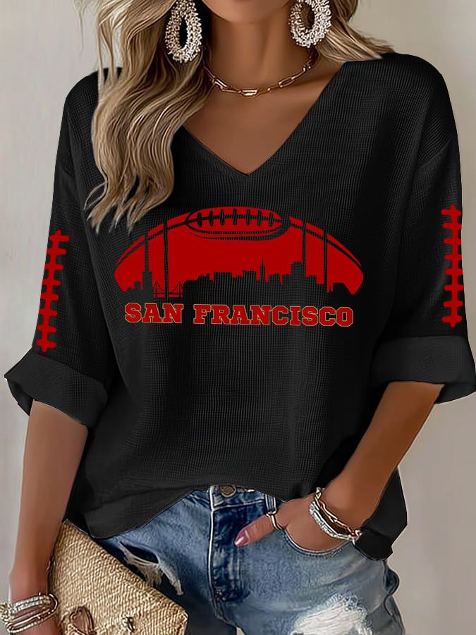 Women's Rugby Print Waffle Long Sleeve T-Shirt