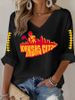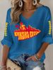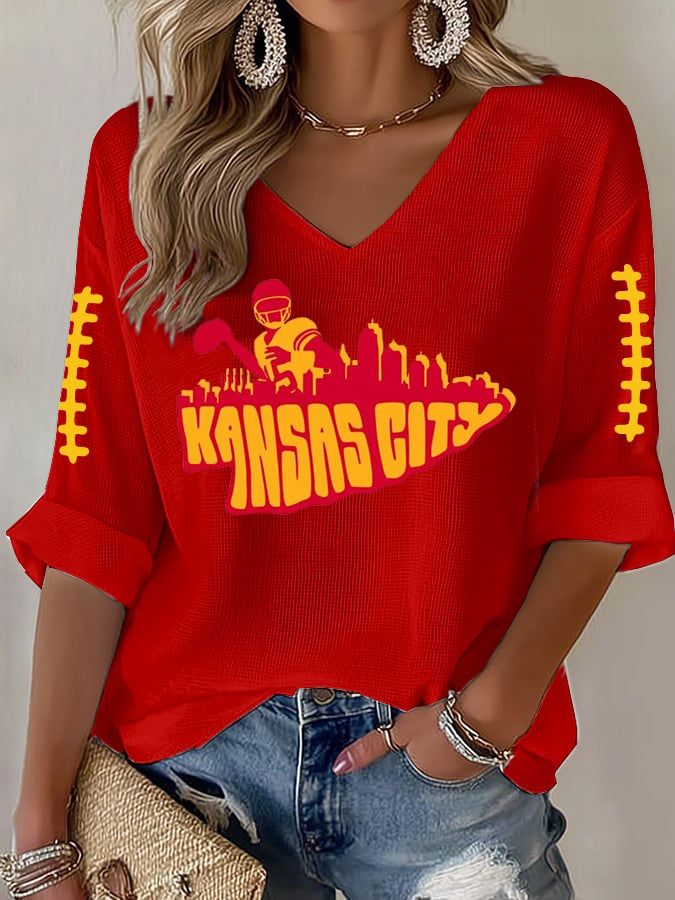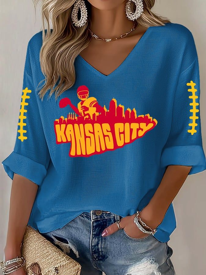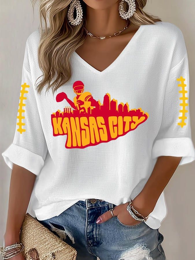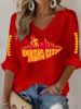 Rugby team color casual Women's Football Print V Neck T-shirt