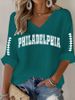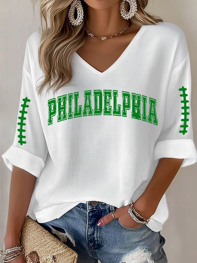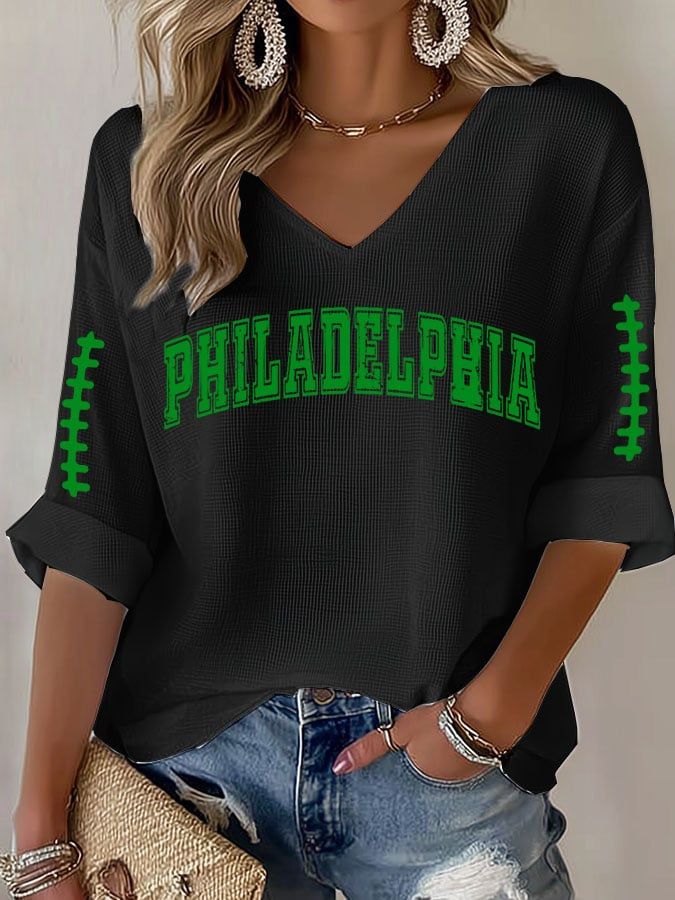 Women's Football Print Waffle Long Sleeve T-Shirt