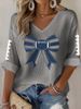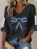 Rugby team color casual Women's Football Print V Neck T-shirt