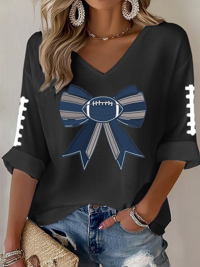 Women's Football Print Waffle Long Sleeve T-Shirt