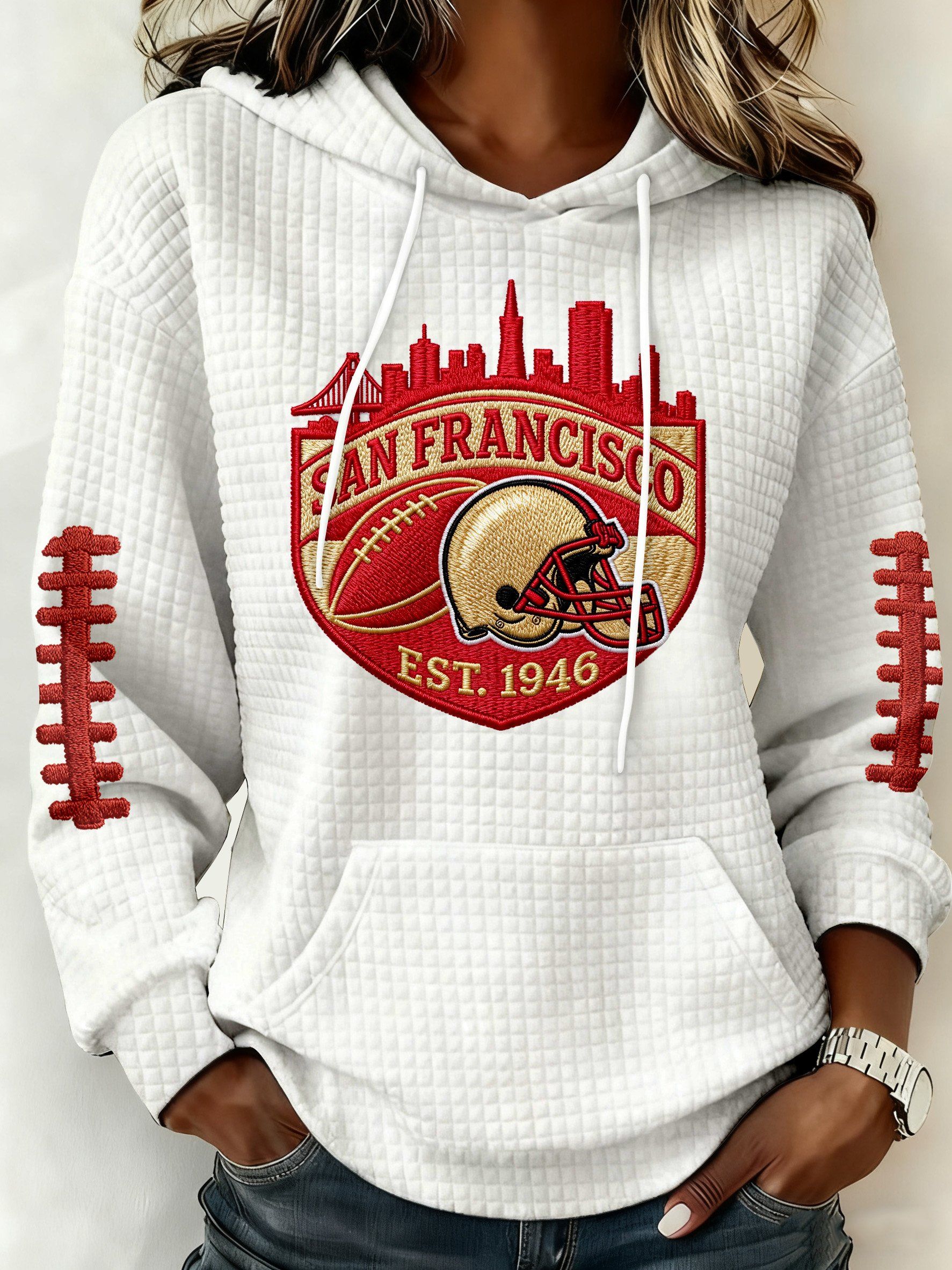 Women's college football team hooded sweatshirt with print