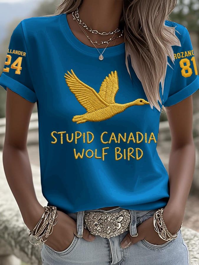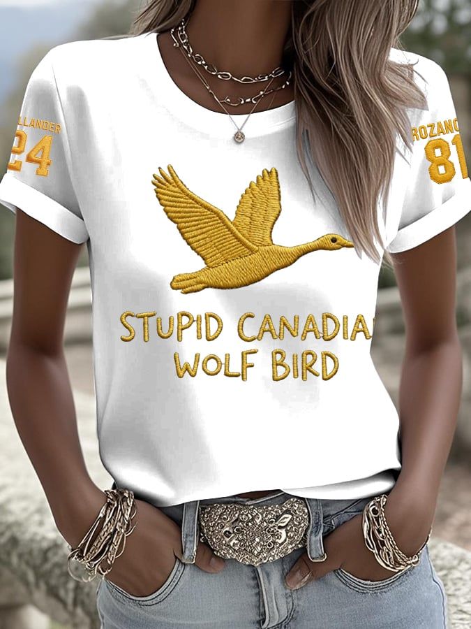 Men's Stupid Canadian Wolf Bird Print T-Shirt