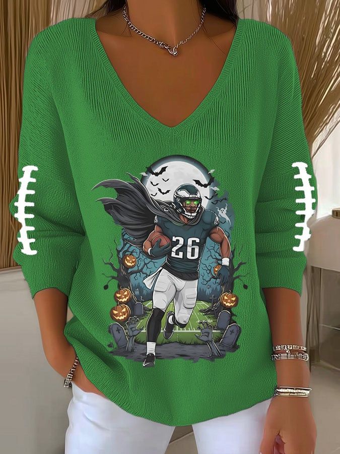 Women's Football Print Waffle Long Sleeve T-Shirt