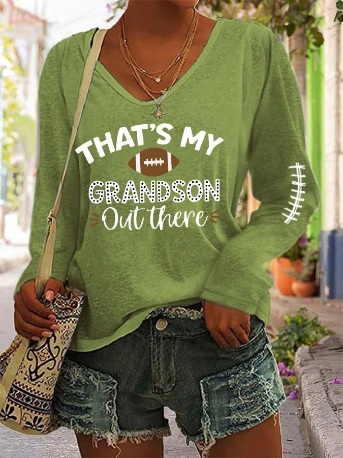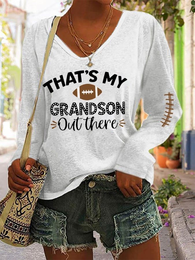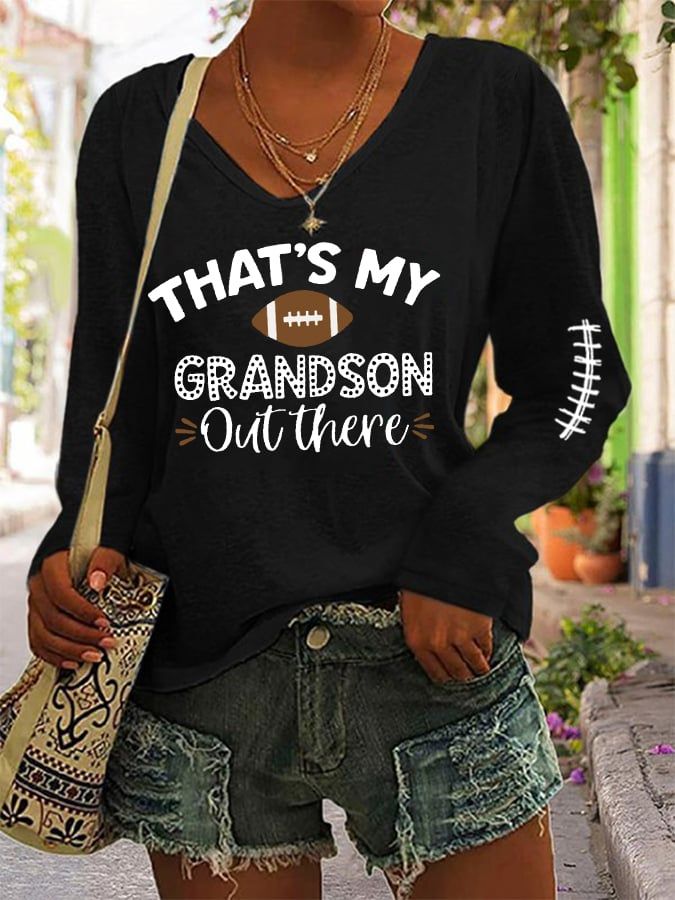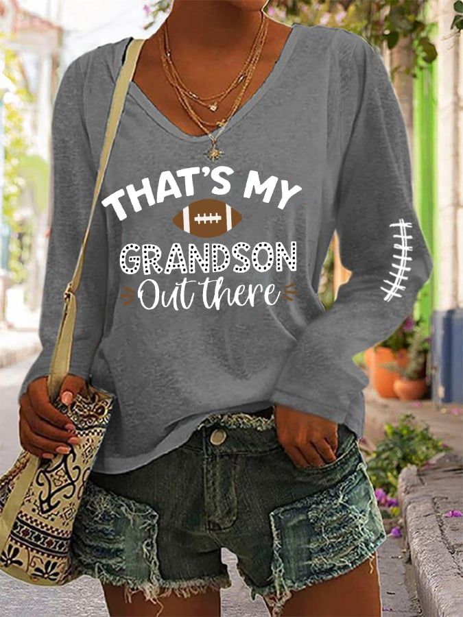Women's That's My Grandson Out There Football Grandma Casual Long-Sleeve T-Shirt