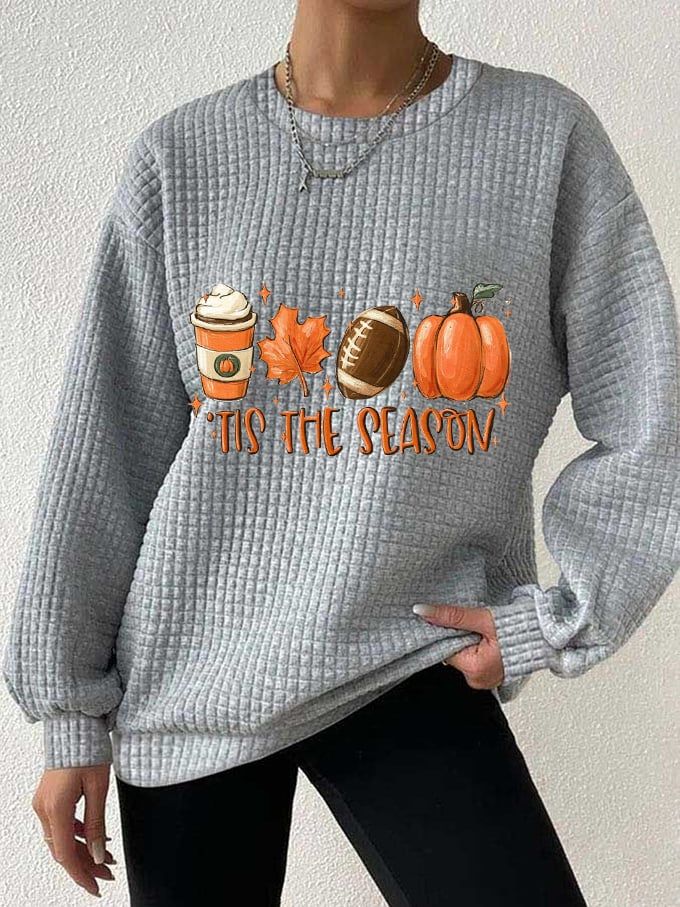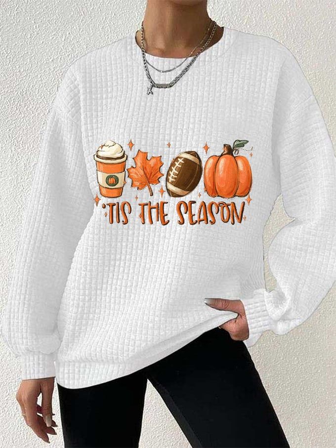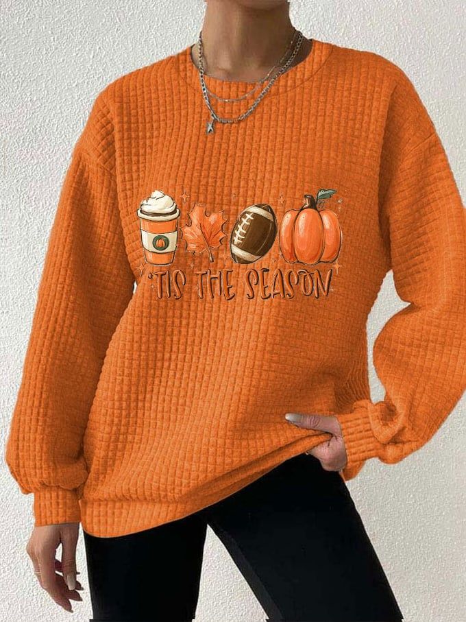 Women's Tis The Season Pumpkin Football Fall Waffle Sweatshirt