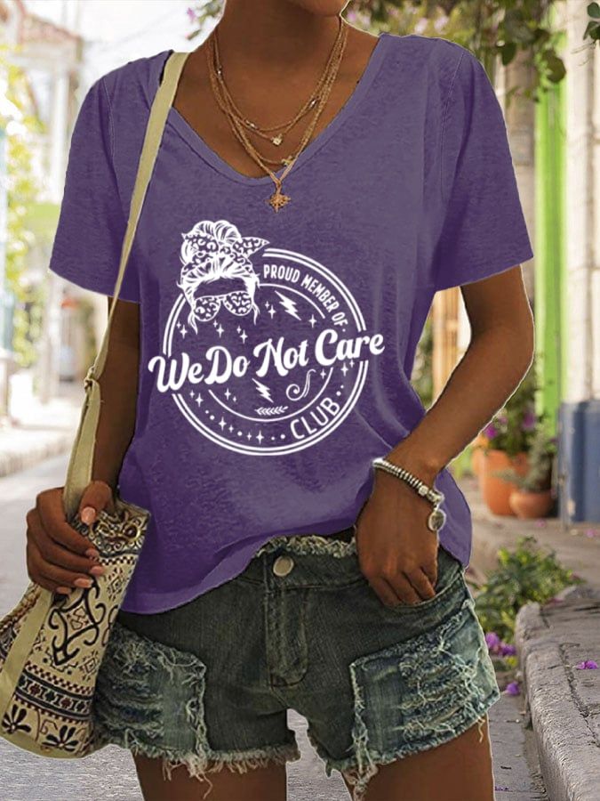V-Neck Retro Funny We Simply Do Not Care Menopause Perimenopause Print T-Shirt