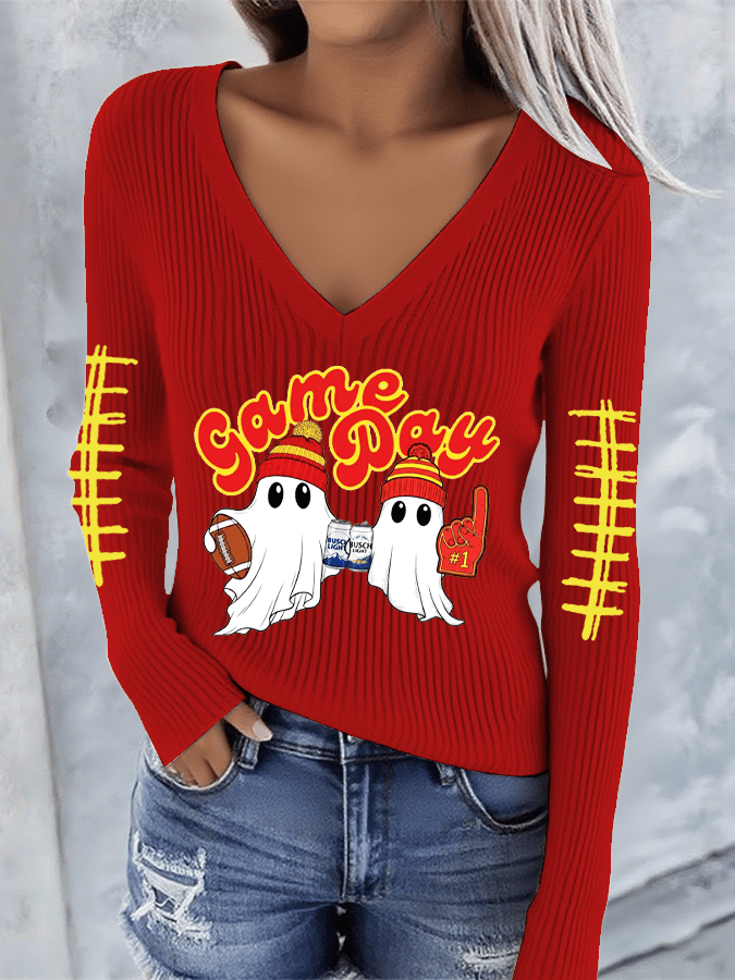 Rugby team color casual Women's Football Print V Neck T-shirt