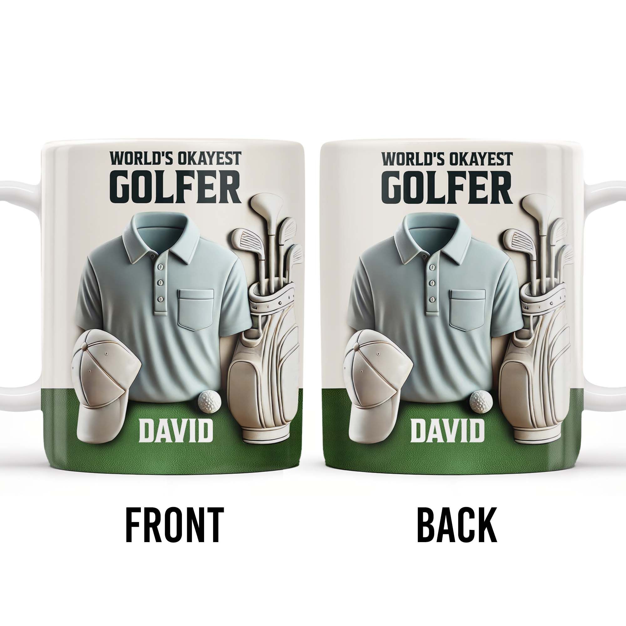 Personalized-World's Okayest Golfer, Golf Shirt, Golf Clubs, Golf Cap - Personalized Custom Coffee Mug - FAM318_MG
